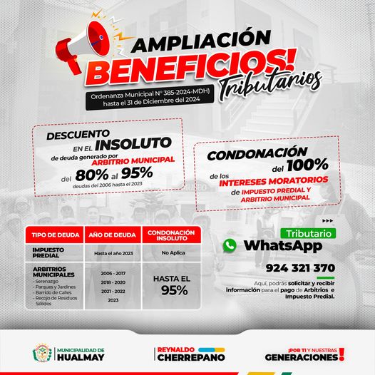 La Municipalidad Distrital de Hualmay, a través de la Ordenanza Municipal N° 385-2024,...