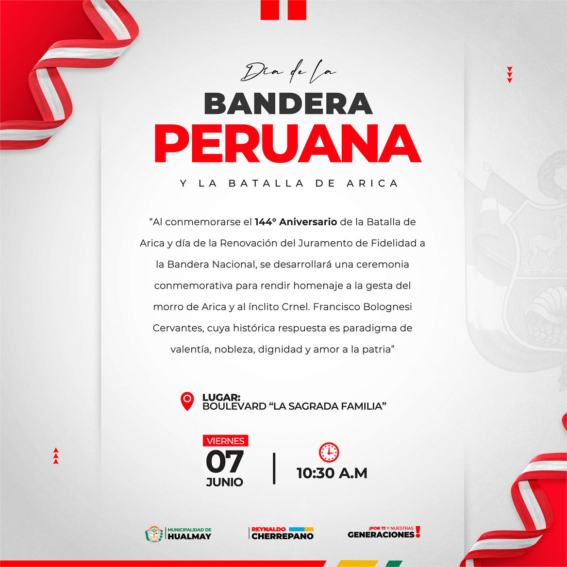 La Municipalidad de Hualmay invita a la población a participar en la ceremonia de colocaci...