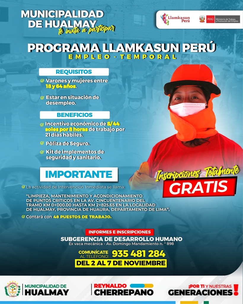 La Municipalidad Distrital de Hualmay, a través de la Or...