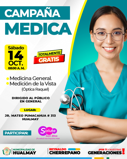 La Municipalidad de Hualmay, te invita a ser partícipe de la Campaña Medica, dirigi...
