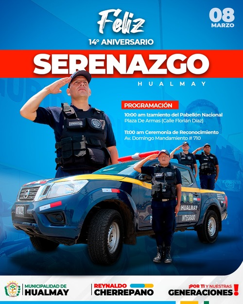 El alcalde del distrito de Hualmay, Reynaldo Cherrepano Manrique, hace extensivo el saludo a toda...