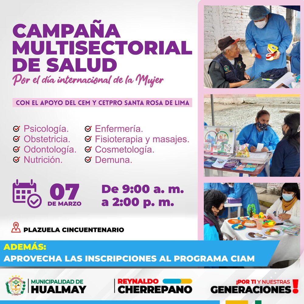 Aprovecha las atenciones GRATUITAS en beneficio de toda la población del distrito.