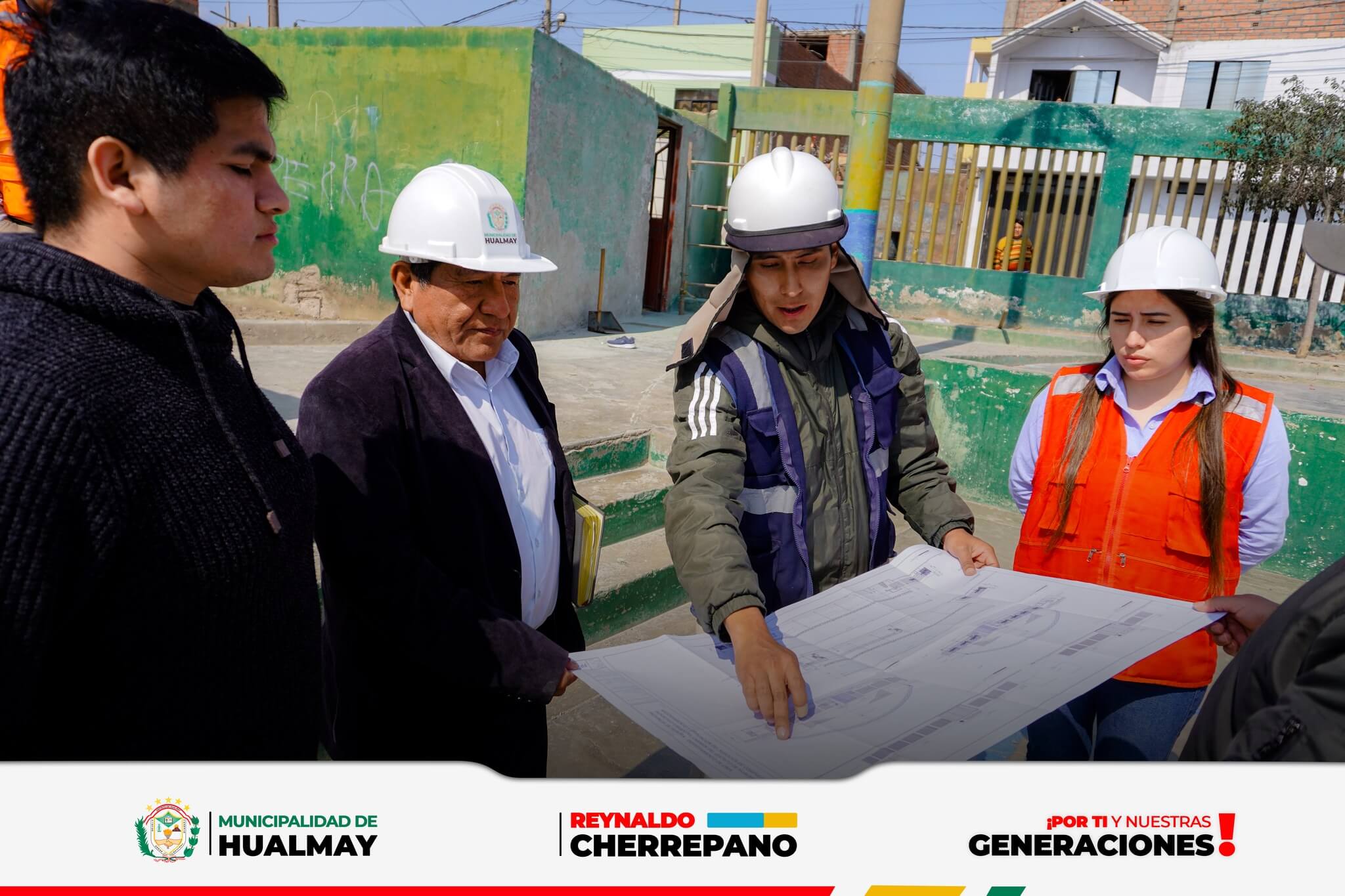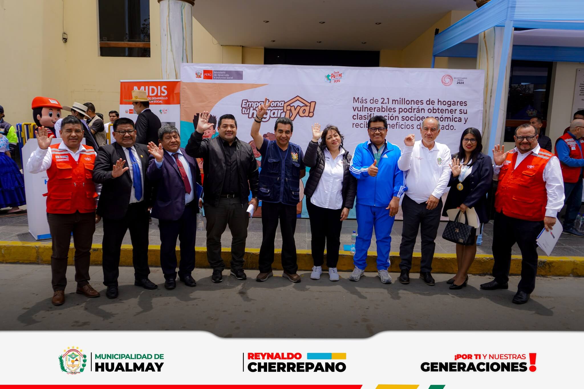 El alcalde de la Municipalidad Distrital de Hualmay, Dr. Reynaldo Cherrepano Manrique y los regidore...