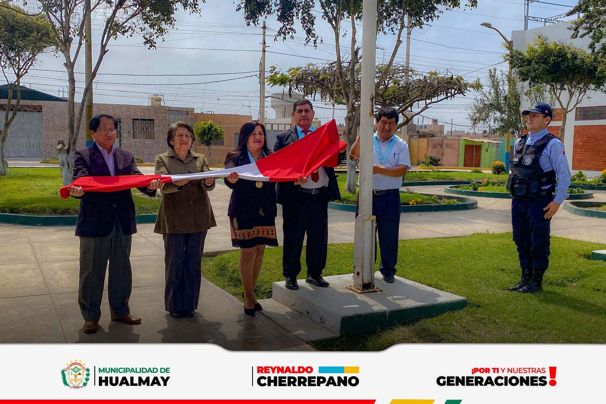 La Municipalidad Distrital de Hualmay, realizó el acto protocolar del izamiento dominical del Pabell...