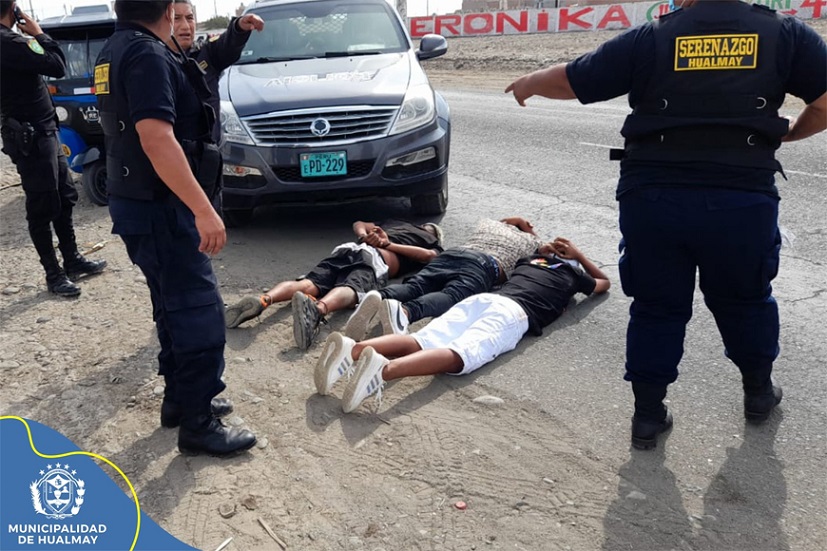 tras una persecución lograron capturar a tres sujetos a bordo de una mototaxi color azul en la aveni...