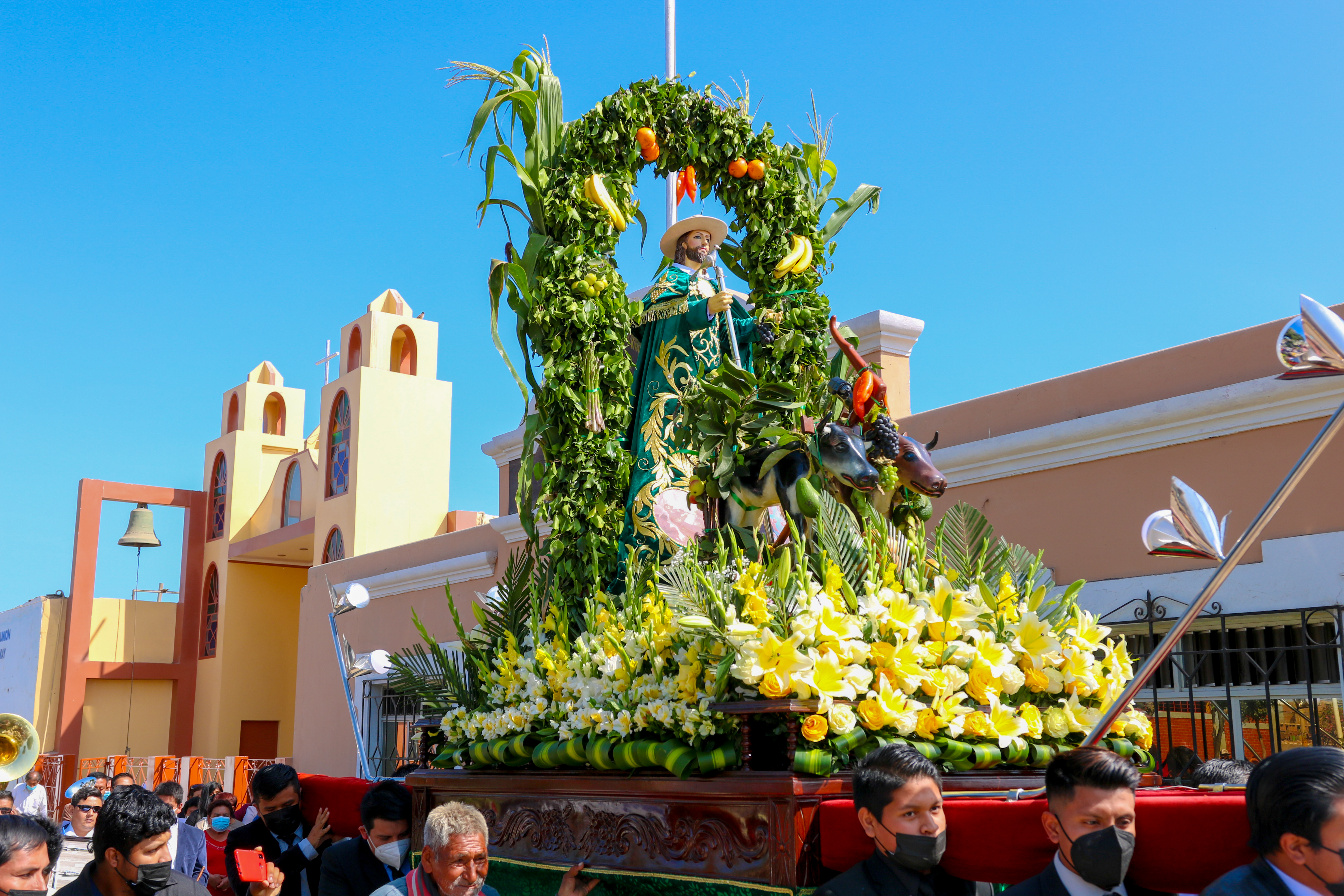 Cabe resaltar que la lampa y las yuntas (toros) del santo patrón representa un símbolo del campo, el ave huachana representa al espíritu santo, se acostumbra adornarle siempre con un racimo de uvas borgoñas como símbolo de prosperidad.